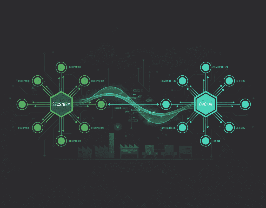 The semiconductor industry has two primary protocol ecosystems: SECS/GEM (SEMI Equipment Communications Standard / Generic Equipment Model), the industry-specific standard dating back to the 1980s with continuous evolution, and OPC UA (Open Platform Communications Unified Architecture), the cross-industry standard gaining momentum since the 2010s. Understanding their strengths, limitations, and ideal use cases is essential for any smart fab architecture decision.
